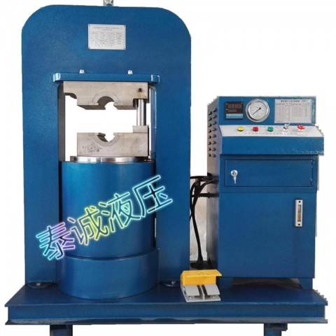 壓套機通過液壓為動力,結構緊湊、運行穩定、噪音小、工作效率高。在不破壞鋼絲強度的前提下使軟金屬在模腔內充分流動,束緊鋼絲繩的鋼絲,通過鋼絲之間摩擦力達到成型的目的。